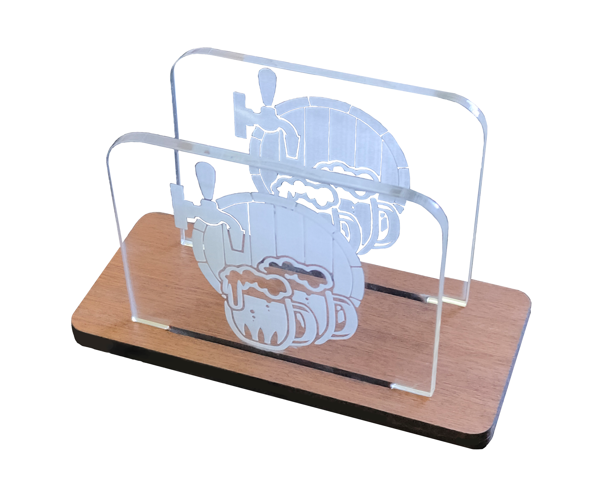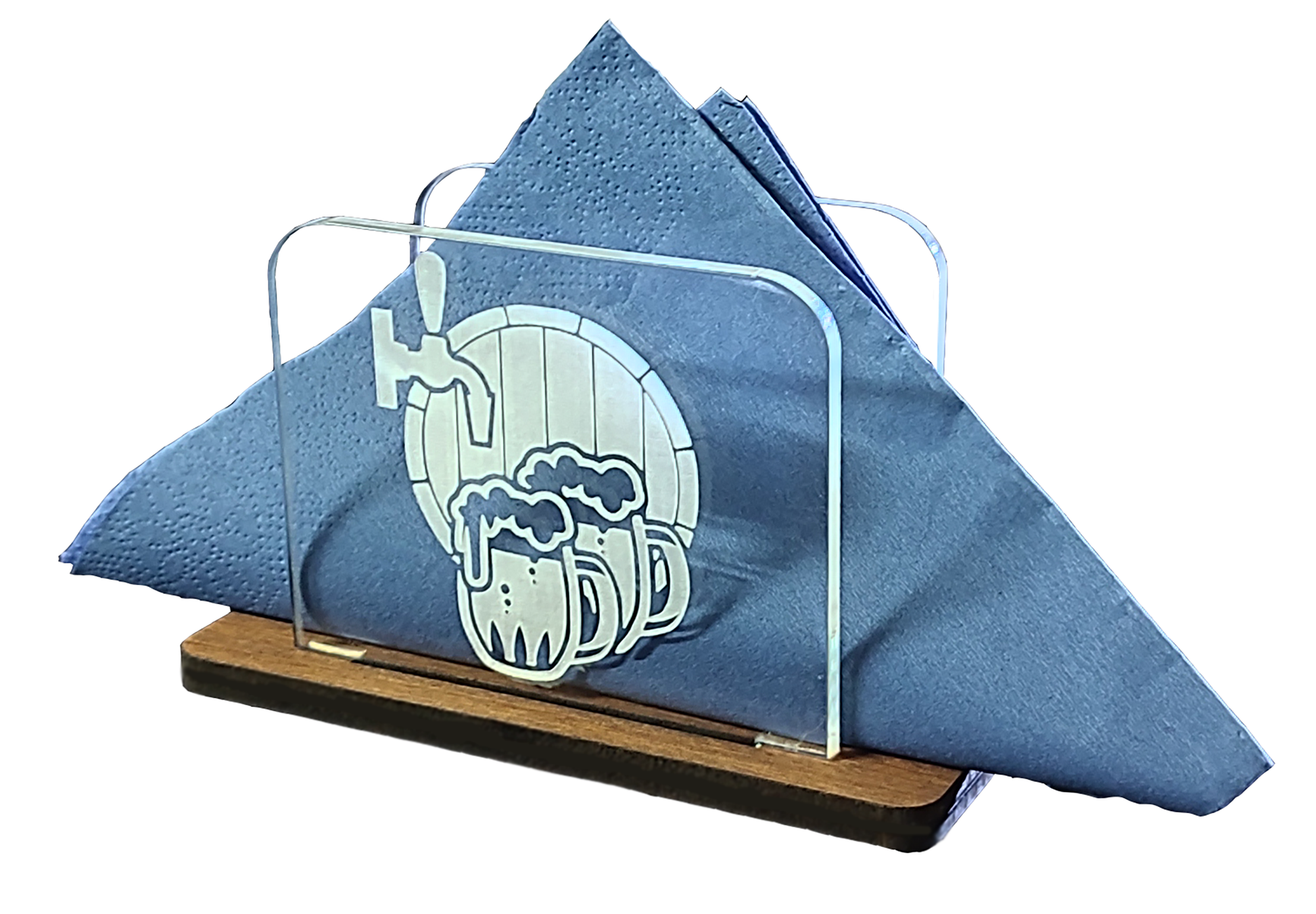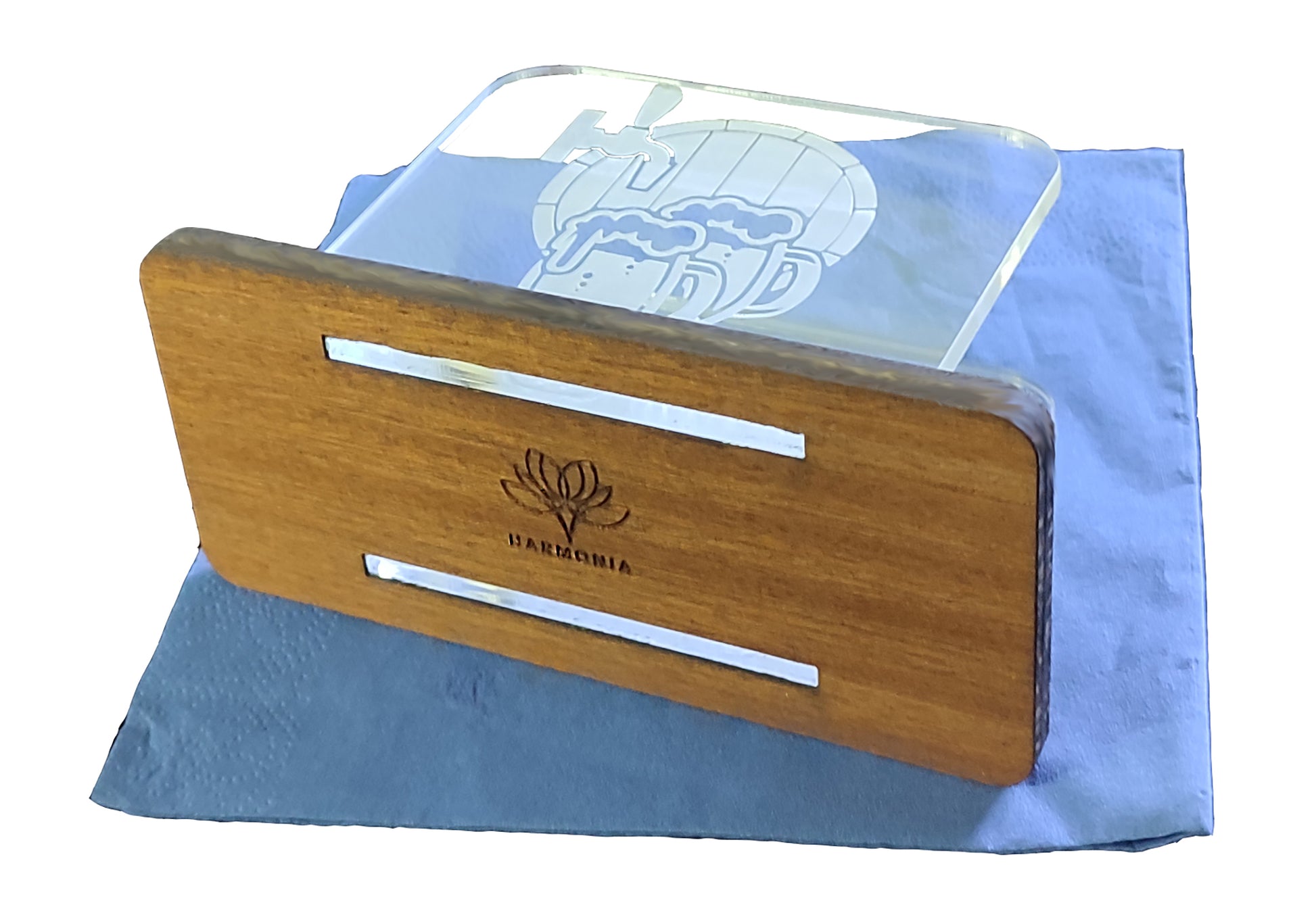 Portatovaglioli in Plexiglass con base in Mogano. Questo pratico portatovaglioli è l'ideale per abbellire la tua tavola.